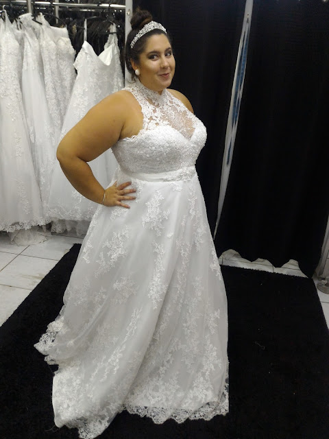 Voltando ao evento, não tenho dúvidas que cada noivinha se sentiu especial! Além de sorteios (de viagem, por exemplo), tinha desconto no fechamento do vestido, champa, comidinhas, ar condicionado super gelado (hahaha, muito bom), atendentes super amáveis e capacitadas e um ambiente muito alegre! A variedade dos vestidos também me chamou atenção. Fiquei bem feliz com o que vi! Parecia um parque de diversão para as noivas plus size!