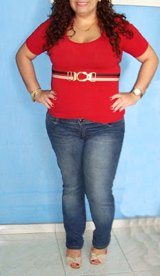 Essa blusinha além de ser super confortável, é beeemmm baratinha! Eu adoro quando a blusa é bem compridinha na manga, pq não enrola e não deixa aparecer os bracitos...hehehe Tinha outros modelos, com bolinha, de listras-uma coisa meio navy... Mas achei que não durariam tanto, pois qdo colocamos, ela estica e o 'desenho', fica distorcido. Mas essa vermelha, eu super adoreyyyy!
