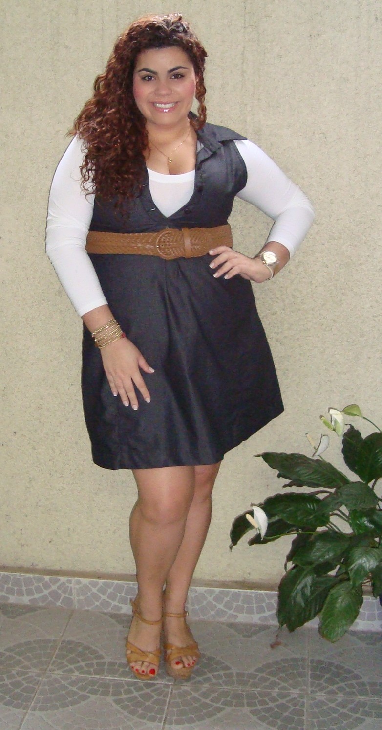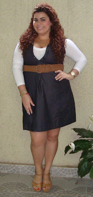 Deixa eu contar rapidinho a história desse vestido..rsrs Ele tem pequenos defeitos, na cava da manga, e "embaixo" do cinto, meio que está descosturando, mas eu achei ele no corpo tão bom, que resolvi levar. De R$ 69,90, foi pra R$ 29,90. Mesmo não fechando no busto, foi paixão a primeira vista, meu novo uniforme!!! Hahahahahaha E o comprimento? PERFEITO! Do jeito que eu gosto, com o joelho aparecendo bem... Hihihi