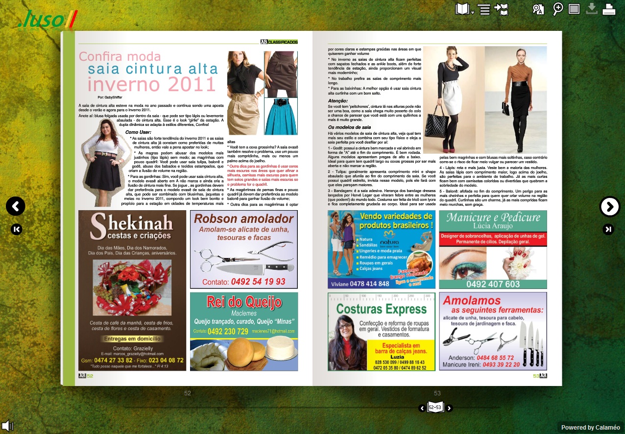Hoje quando abri meu email do blog (fofashions@gmail.com), recebi um lindo email da leitora Andresa Botelho e fiquei surpresa.... uma revista brasileira que circula na BÉLGICA, mais precisamente BRUXELAS, fez uma matéria sobre cintura alta, USOU A MINHA FOTO E NÃO DEU OS DEVIDOS CRÉDITOS!!!!