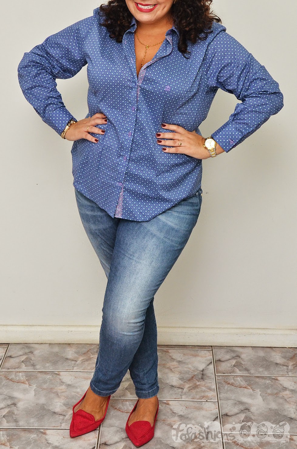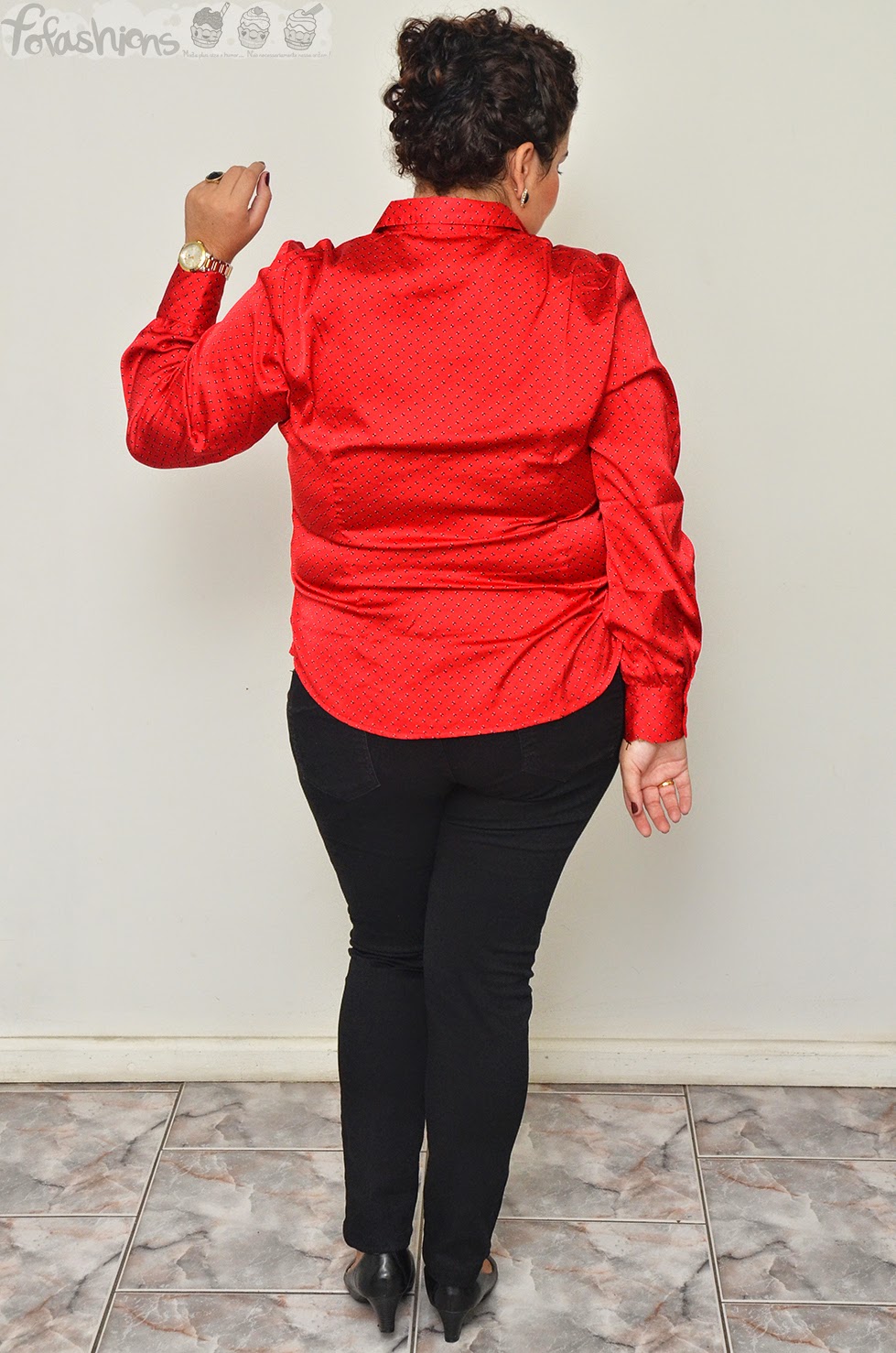 Gente, para minha alegria, o Nº 48 serviu! Tipo, uma blusa chamada "toque de seda", que é uma mistura de cetim com elastano, com estampa fofa, com cor viva...Uma blusa social "normal" que coube nos meus 121 cm de busto, 122 cm de barriga (na altura do umbigo) e atuais 101 kgs. Nossa, quase chorei no provador...hahahaha
