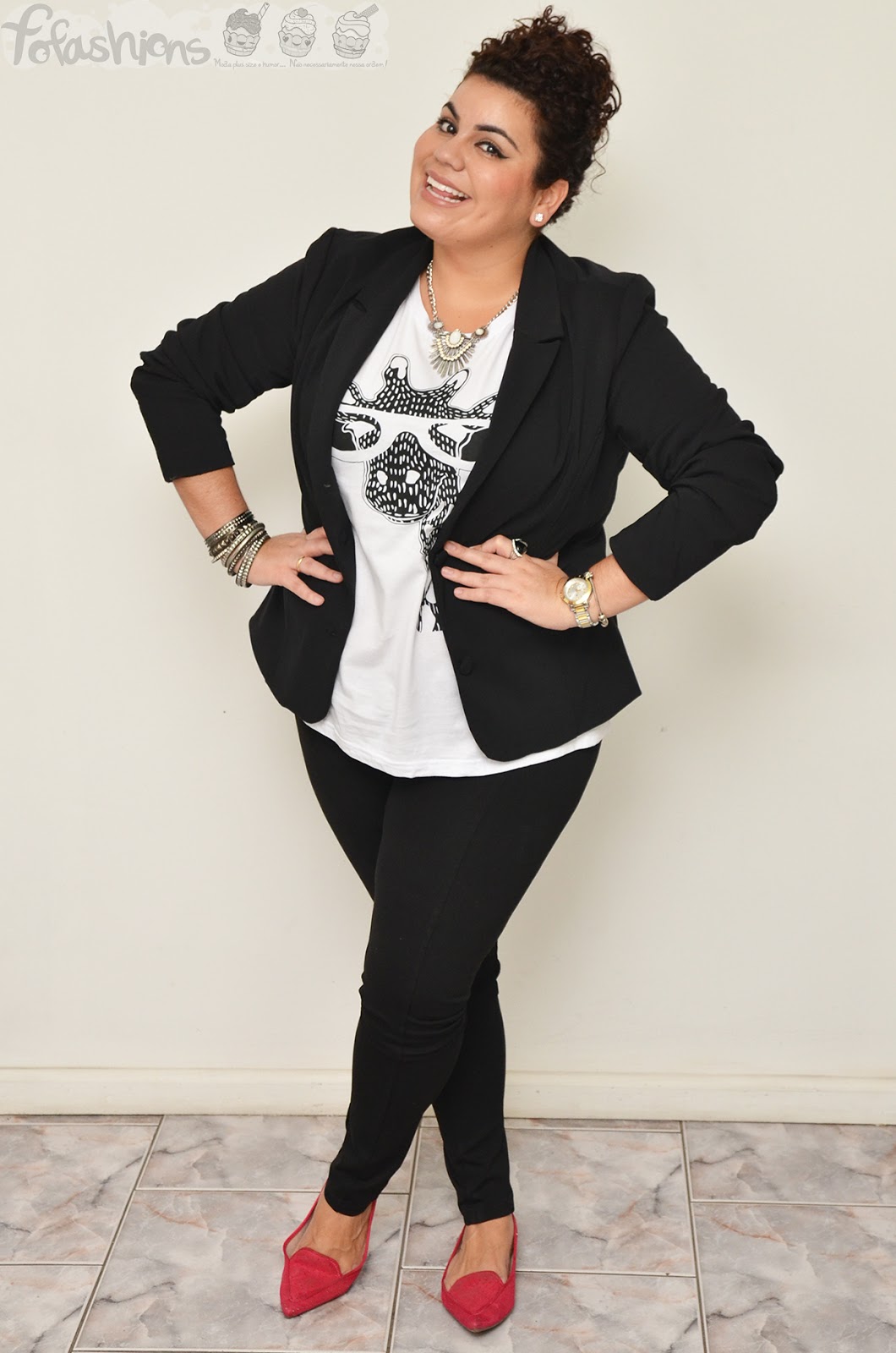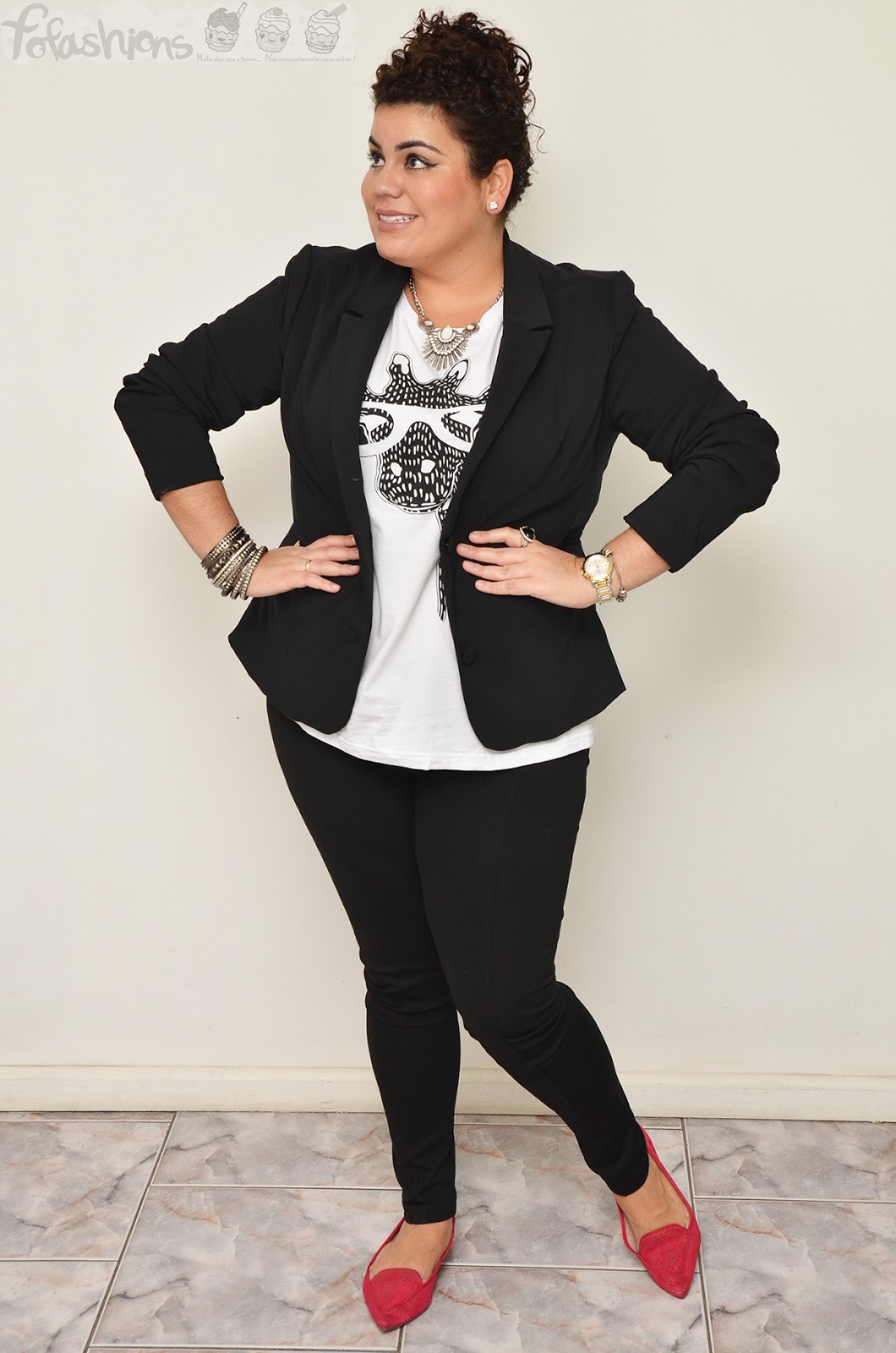 Look do dia: blazer preto e t-shirt de girafa!