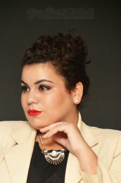 Nos cabelos, fiz um coque pra cima, coloquei os grampos sem muita ordem e tentei colocar um topete para deixar o coque bem 'largadão". Ficou um ninho de passarinho, mas eu adorei o resultado!
