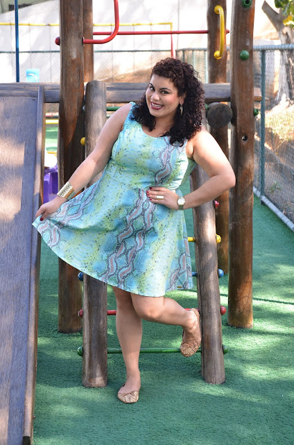 Já o vestido ganhou meu coração com força! Ele é fresquinho, evasê (#muitoamor), com estampa linda, tecido "geladinho", ai ai! Usarei várias vezes com certeza! Inclusive nesse inverno do Rio de Janeiro que mais parece verão, hehe.