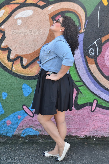 Hoje tem look do dia? Tem sim senhoras! Oba! Uma misturinha que eu adoro: camisa jeans com saia de couro fake. Eu amo demais a lavagem dessa blusa da Leader. Acessórios na cor prata deram todo um charme a ela. Para completar, saia da Chica em couro fake e uma sapatilha colorida para sair do óbvio (que seria uma sapatilha preta ou qualquer outro calçado preto).